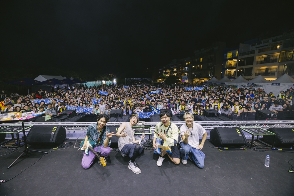 晚間登場的演出同樣熱力四射,由八青哥率先開場點燃氣氛,接續由公館青少年接力飆歌,現場情緒持續升溫,隨後登場的美秀集團更是一出場就引爆全場,超過萬名樂迷齊聚大灣遊憩區,熱情氛圍也感染周邊民宿,二、三樓陽台上可見不少歌迷走出房間隨著節奏搖擺、揮手合唱,最後DJ YU From慶記KTV延續熱度,播放多首臺灣熱門金曲,讓舞台前到街區高處瞬間成為一場震撼人心的戶外K歌盛宴。