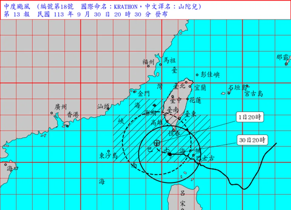 颱風山陀兒動態更新 西南部地區高風險 請注意氣象消息